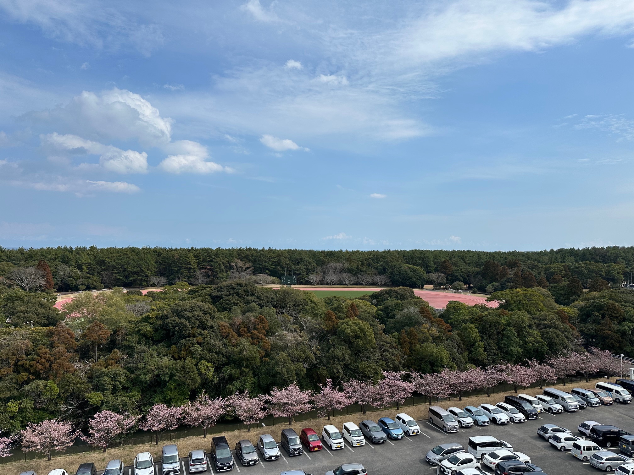 ふとスタジアムから外を見渡すと河津桜の花も綺麗に咲いていて春の訪れを感じさせてくれました。
