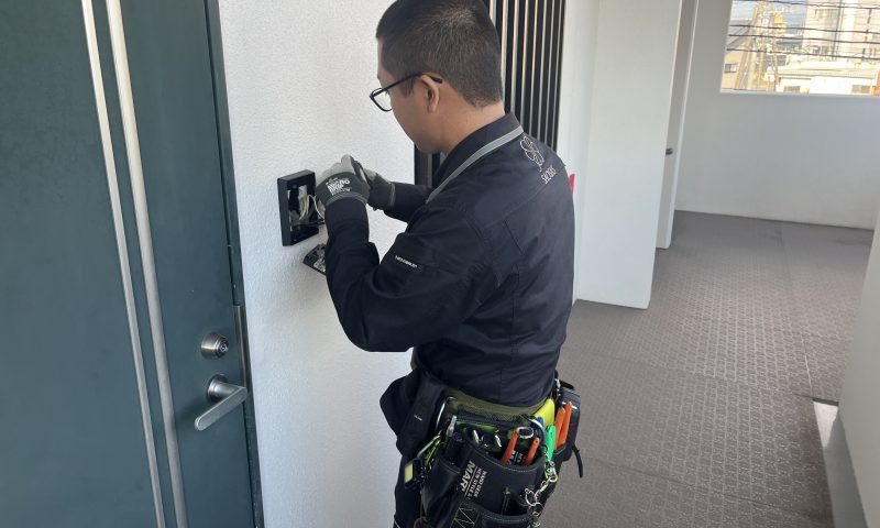 熊本市東区の9世帯マンションにおいて、オートロックインターホンシステムのリニューアル工事を竣工しました